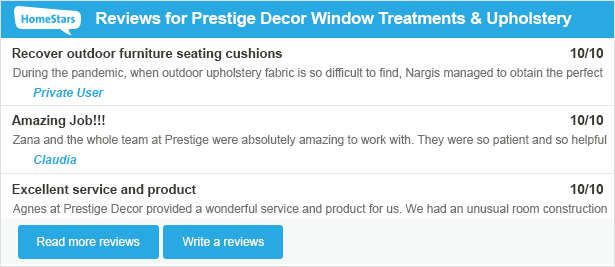 Prestige Decor™ is a window coverings & reupholstery store in Mississauga with almost 20 years of experience, offering beautiful custom curtains and furniture upholstery products and services in the Greater Toronto Area.
