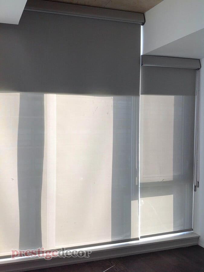 This innovative setup comprises two autonomously controlled shades: a blackout shade at the rear and your preferred option of roller, dual, cellular, or pleated shades at the forefront, ensuring comprehensive lighting management.