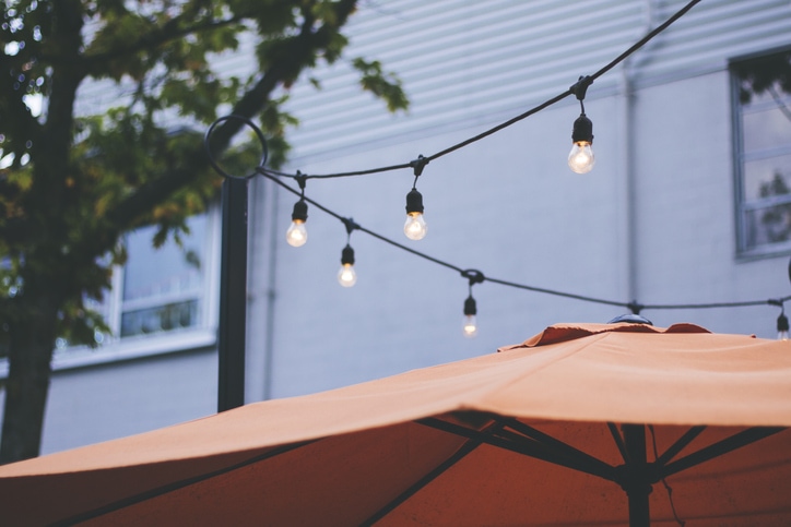 Adding some string lights to your patio can completely change the look of the space once the sun goes down. String lights help you to better see your friends smiling faces late into the night and they look magical against a starry sky. You definitely don’t want to miss out on the cozy feels that come from glistening lights!