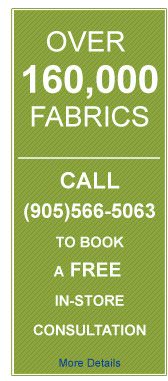 Prestige Decor™ Fabric & Window Treatments is located in Mississauga ON Canada, just a 15-minute drive from downtown Toronto, but with our mobile Shop@Home service, we are available to the entire Greater Toronto Area (G.T.A.) with our window treatments, upholstery, and fabric services.
