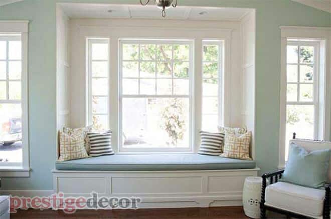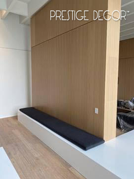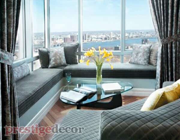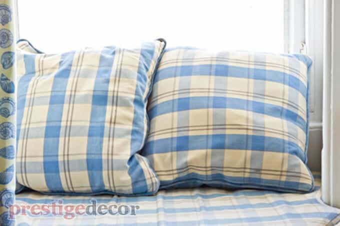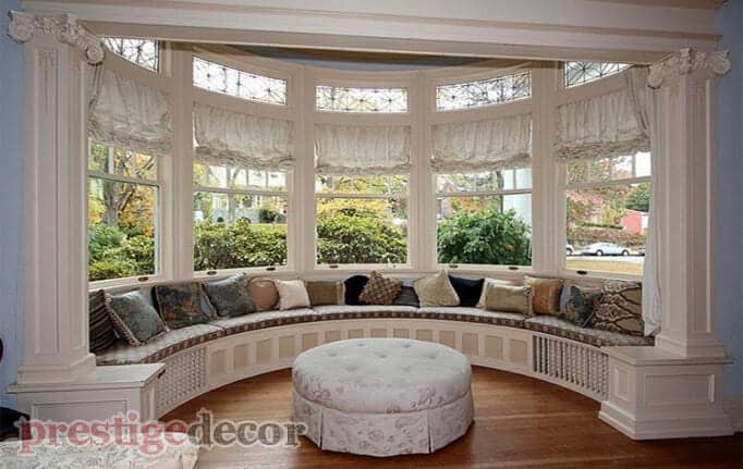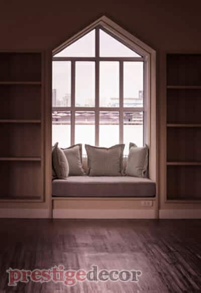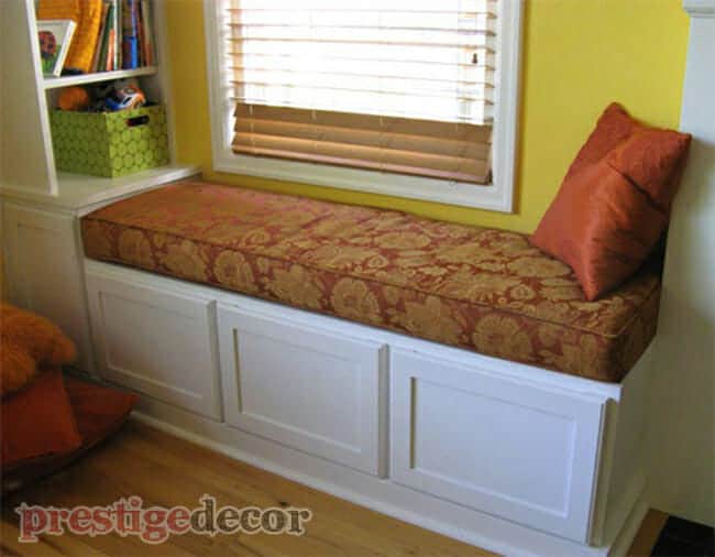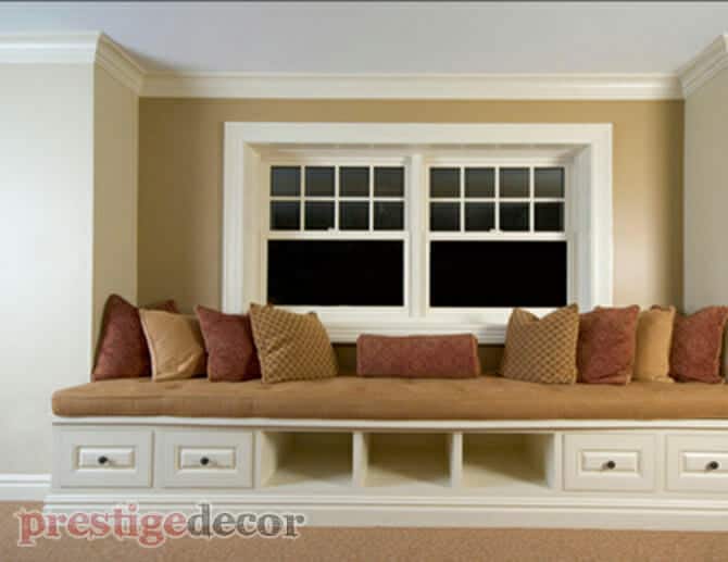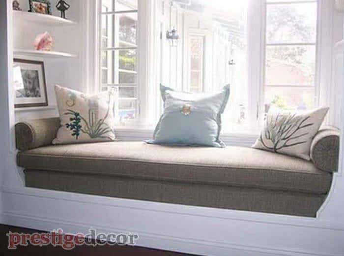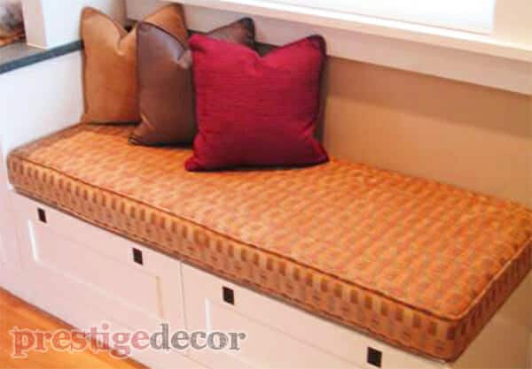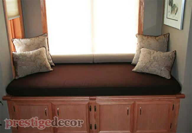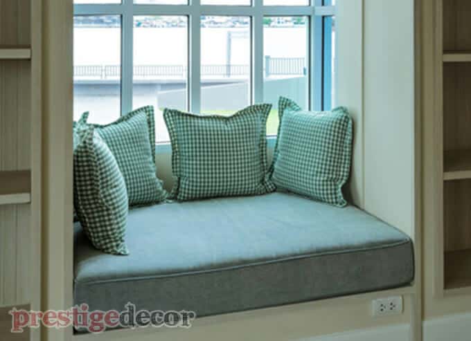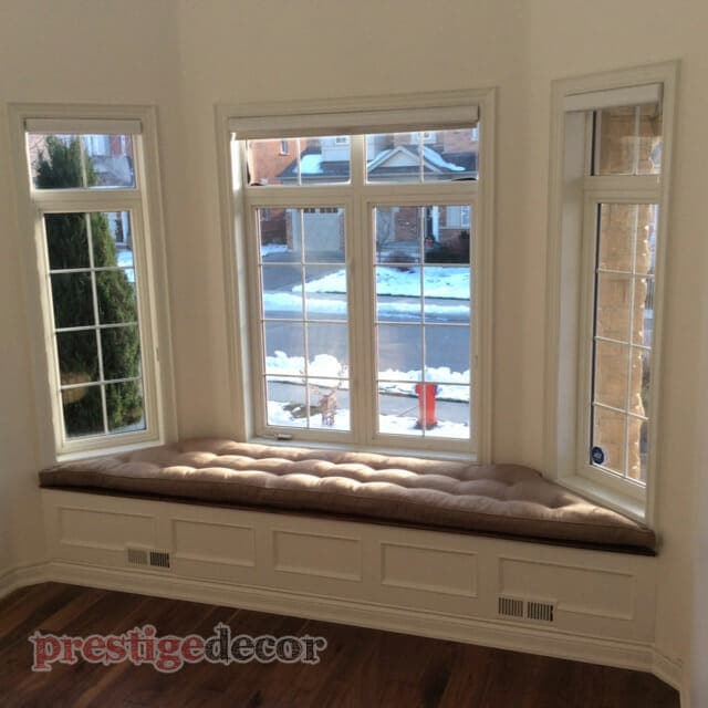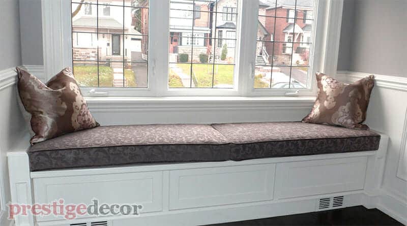 We specialize in custom window seat cushions, bay window seat cushions, bay window curtains and bench seat cushions. At Prestige Decor we will help you reupholster your existing window seat cushions or to design brand new window seat cushions from scratch. No matter the shape or size of your window seat/bench, and no matter what fabric colour or pattern your are looking for we have what you need. We have over 100,000 window seat cushion fabrics to choose from and our friendly and knowledgeable design consultants will help you choose the perfect material and fabric for your window seat cushions. Before you decide to come to our fabric store we advise you to take some photos of your window seat/bench and surrounding decor so that we have a better idea of which fabrics to recommend. Also, if your window seat/bench is a simple shape like a rectangle, take a measurement of the width and length of the area you wish to cover with the window seat cushion. This way we will be able to give you a price quote when you come in or when you call over the phone